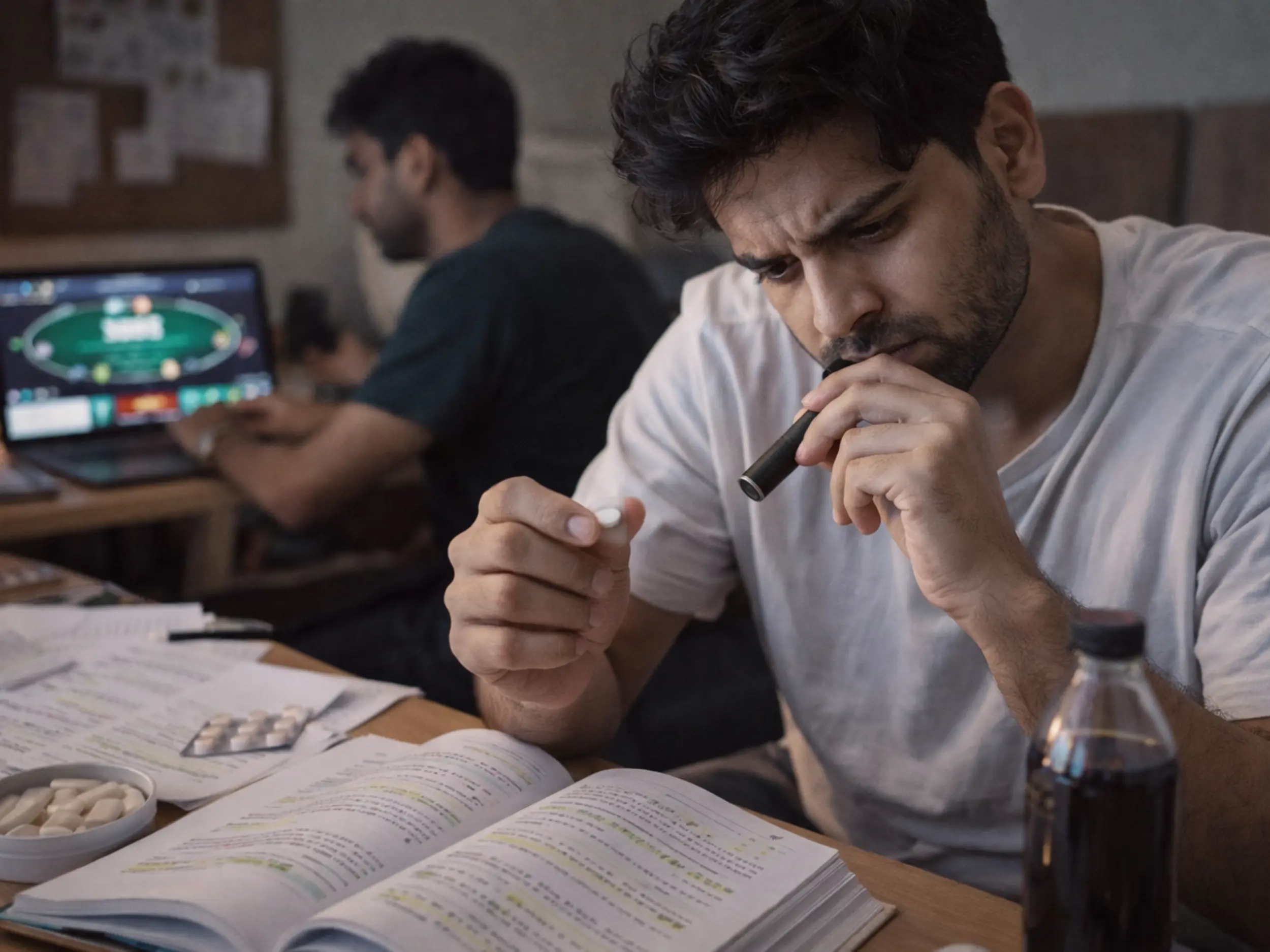 Stimulants, caffeine-heavy drinks, and unregulated “study aids” are increasingly used not recreationally, but instrumentally. They are framed as tools to cope with academic overload rather than substances that alter neurochemistry.